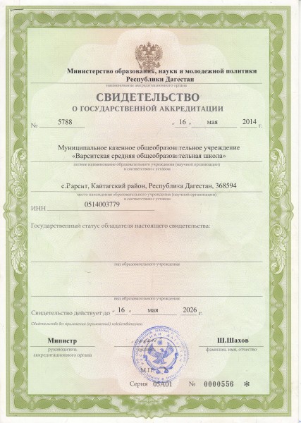 | Адрес местонахождения образовательной организации* | 368590,Республика Дагестан, Кайтагский район,с.Варсит |